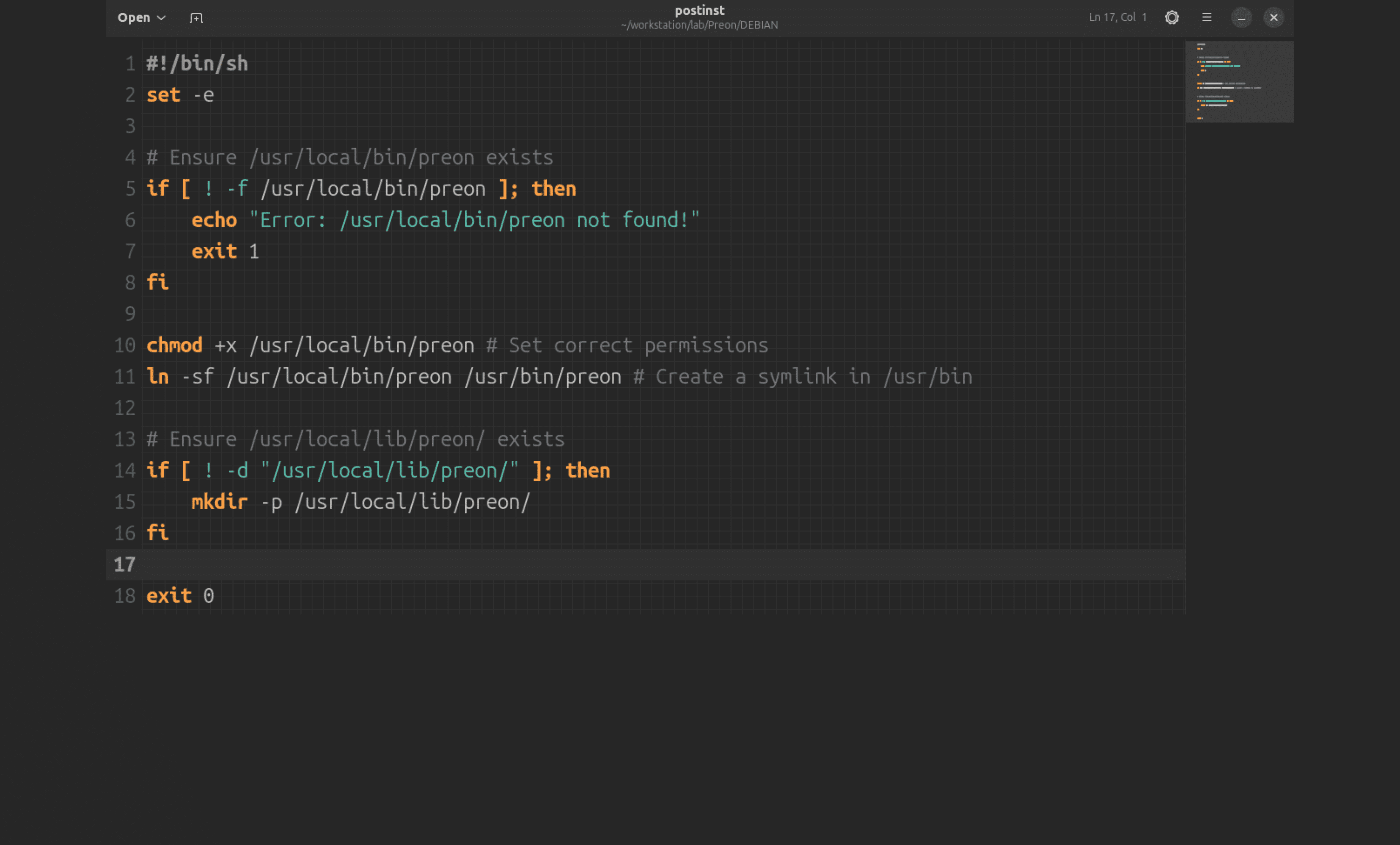 .debinstaller with support for system-wide deployment,PYTHONPATHconfiguration, and versioned removal.Implemented human-readable command parsing to translate common filesystem operations into intuitive phrases like “preon create file” and “preon show all.”